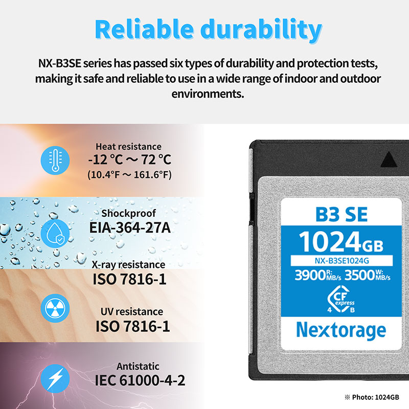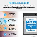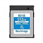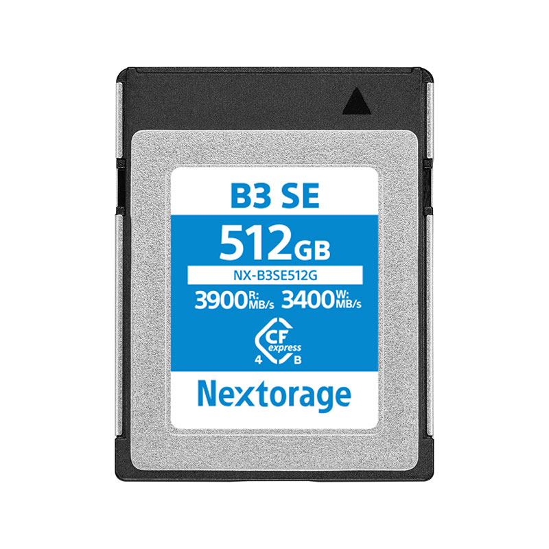 Nextorage NX-B3SE 512GB CFexpress™ Type B Memory Card — Ideal for 4K/8K video and continuous still shooting, this CFexpress 4.0 card offers blazing-fast speeds up to 3,900 MB/s read and 3,500 MB/s write. Built for reliability with six durability tests, CFexpress 2.0 compatibility, and bundled with data recovery software and a 5-year warranty.